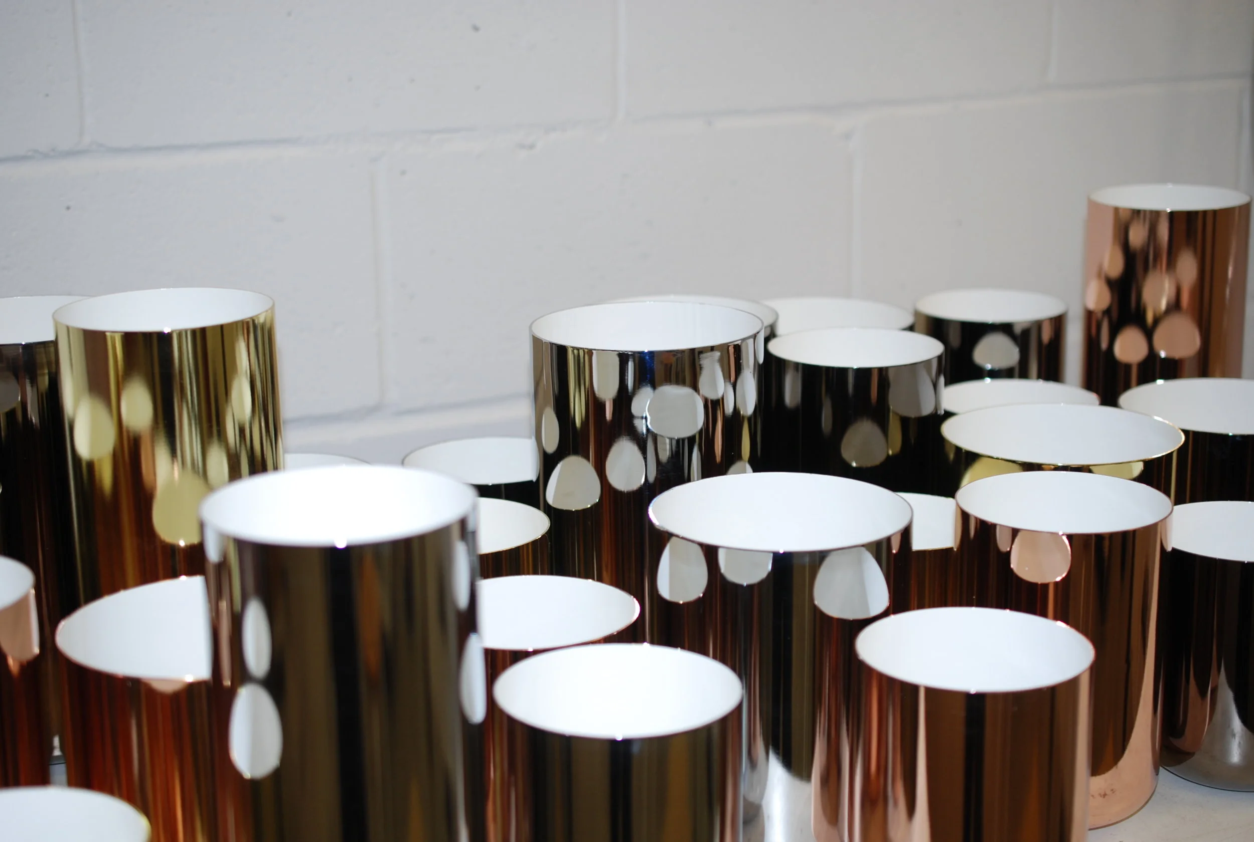 One of our longest standing relationships has been with famed Toronto design firm Castor. We have been finishing some of their products like these recycled fire extinguisher, pendant lights almost as long as we have been in business. Batches of 50-100 are painted at a time and we have done our best to make the process as efficient as possible while maintaining high quality control standards. Of course we also love seeing all of this material being reused without having to go through an intensive recycling process.
